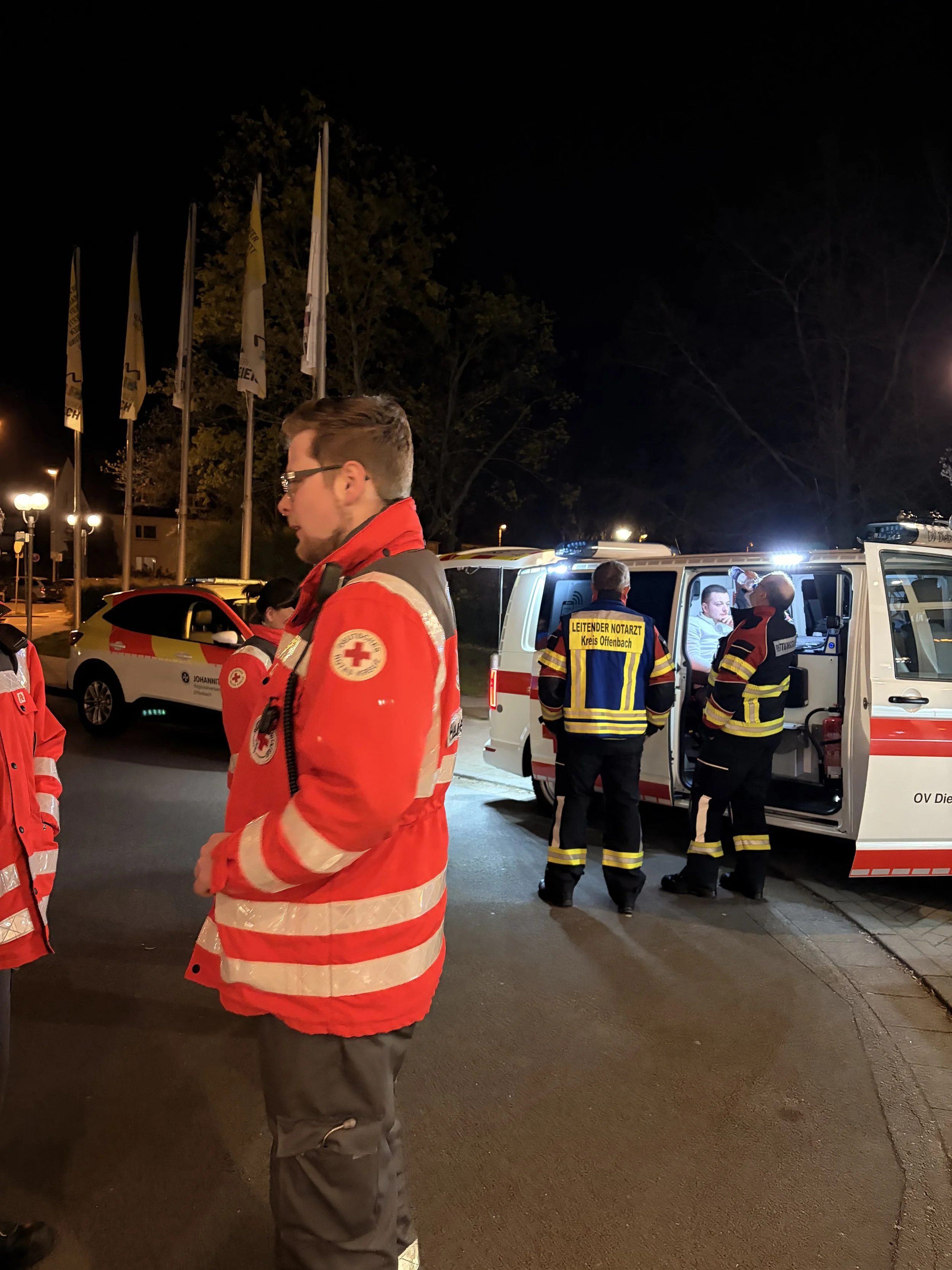 Auch wir vom DRK Heusenstamm waren Teil dieses Einsatzes und rückten mit sechs Einsatzkräften zur Unterstützung nach Dreieich aus. Vor Ort unterstützten rund 20 Einsatzkräfte verschiedener Ortsvereine der DRKs des Kreis Offenbachs die Betreuung der betroffenen Personen und arbeiteten eng mit den Einsatzkräften von Feuerwehr, Rettungsdienst und Polizei zusammen. Unser Einsatz erstreckte sich von etwa 21:00 Uhr bis 23:30 Uhr.